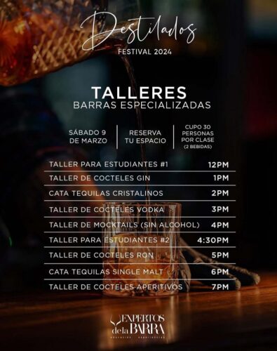 Este Festival reunirá a los distintos actores de la industria, expertos que participarán en 7 talleres y barras especializadas por destilado, como cierre, se llevará a cabo la a 2.ª Competencia anual de Bartenders, además de propuestas gastronómicas y por supuesto, la participación de las mejores marcas.