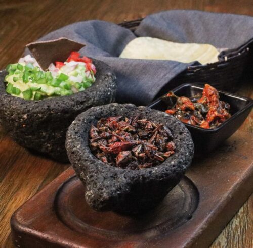 - Chapulines: si bien los chapulines (saltamontes) son una fuente de proteína común en muchas culturas latinoamericanas, encontrarlos en la app de Uber Eats en Guatemala puede resultar sorprendente para algunos. Estos insectos, tostados y sazonados con una mezcla de especias, se sirven con guacamole, cebolla morada, jitomate, cilantro, jalapeño, chicharrón criollo, queso duro y un toque de limón. Este plato está disponible en el Restaurante Polanco.