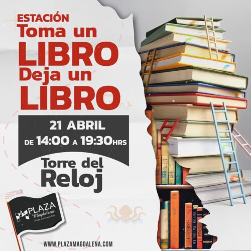 Los apasionados de la lectura pueden visitar el centro comercial el domingo 21 de abril entre 2:00 pm y 7:30 pm, para participar en la actividad “toma un libro, deja un libro” para compartir con todos la afición por la lectura en la Torre del Reloj.
