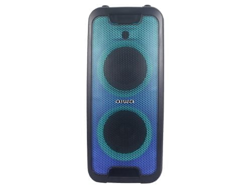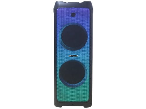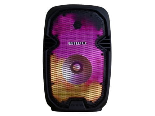 Un modelo que incluye micrófono, control remoto, trípode, woofer de 15 pulgadas, compatibilidad con USB, FM, Aux-in, función TWS para reproducir música al mismo tiempo con dos AWSP15TK, 1000 watts de potencia PMPO con ecualizador de sonido y luz rainbow.
