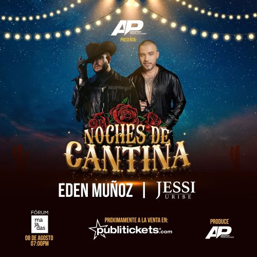 El segundo concierto que se contempla será el 8 de agosto con EDÉN MUÑOZ y JESSI URIBE en un evento diferente y bajo un concepto experiencial denominado “NOCHES DE CANTINA”. Las entradas para ambos eventos estarán a la venta en Publitickets.com y su salida a la venta se anunciará oportunamente.