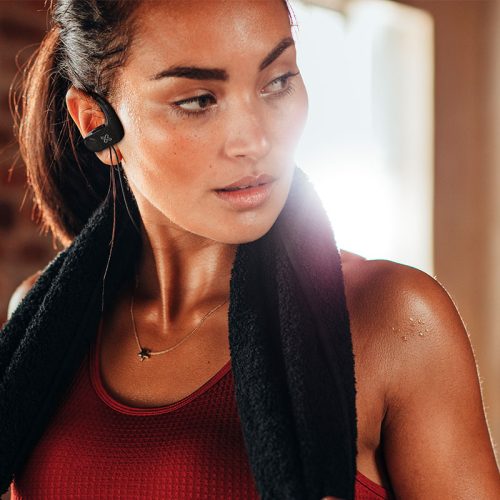 Estos audífonos ofrecen protección IPX7 lo que significa que incluso puedes sumergirlos en el agua, así mismo, su diseño está previsto para largas e intensas sesiones de entrenamiento ya que cuenta con ganchos estabilizadores, de manera que solo debes preocuparte por romper tus propias metas.