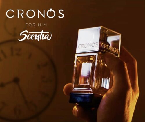El diseño de Cronos refleja su filosofía: un frasco con líneas limpias y elegantes, reminiscente de un reloj clásico, simboliza la fusión perfecta de arte y tiempo. Este empaque no solo alberga una fragancia, sino que sirve como un recordatorio constante de que el tiempo es nuestro lujo más grande.