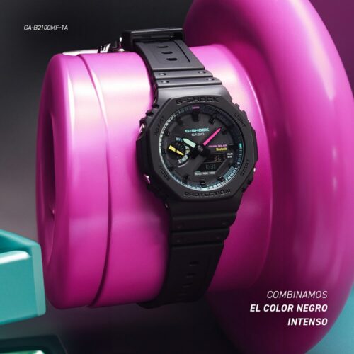 La colección Multi-Fluorescent Accents de G-SHOCK es un tributo contemporáneo a la vibrante moda de los 80 y 90, una época considerada la Edad Dorada del Hip-Hop. En este periodo, el hip-hop no solo revolucionó la música, sino que también definió estilos audaces y coloridos que se convirtieron en un símbolo de identidad cultural. G-SHOCK, con su legado de resistencia y estilo, captura esta esencia en modelos como el GA-B2100MF-1A, GA-700MF-1A y GA-100MF-1A. La caja negra mate de estos relojes, acentuada con elementos fluorescentes en verde azulado, fucsia y amarillo canario, recuerda la estética de la moda urbana de aquellos años, donde los colores vivos y los diseños llamativos eran protagonistas.