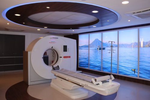 “La nueva sala de tomografía está diseñada para el confort del paciente con un diseño moderno y minimalista y una iluminación confortable. La sala es agradable a la vista, al olfato y al oído, ya que cuenta con un paisaje retroiluminado con aromaterapia y música ambiental,” señala el Ing. Héctor Meda, jefe de Biomédica.