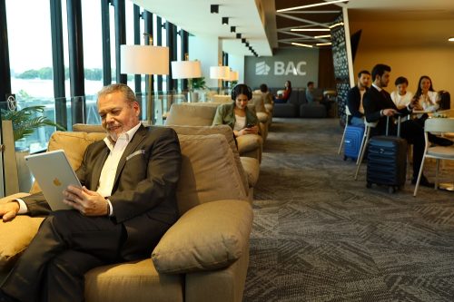 Desde bebidas y aperitivos en barra para que los visitantes puedan servirse lo que deseen, espacios equipados con WiFi para reuniones presenciales o virtuales, hasta vehículos eléctricos a disposición de los usuarios para que puedan ser trasladados desde el lounge a la puerta de abordaje, BAC Lounge cuenta con personal altamente capacitado que se compromete a atender todas las necesidades de sus visitantes garantizando una experiencia inolvidable.