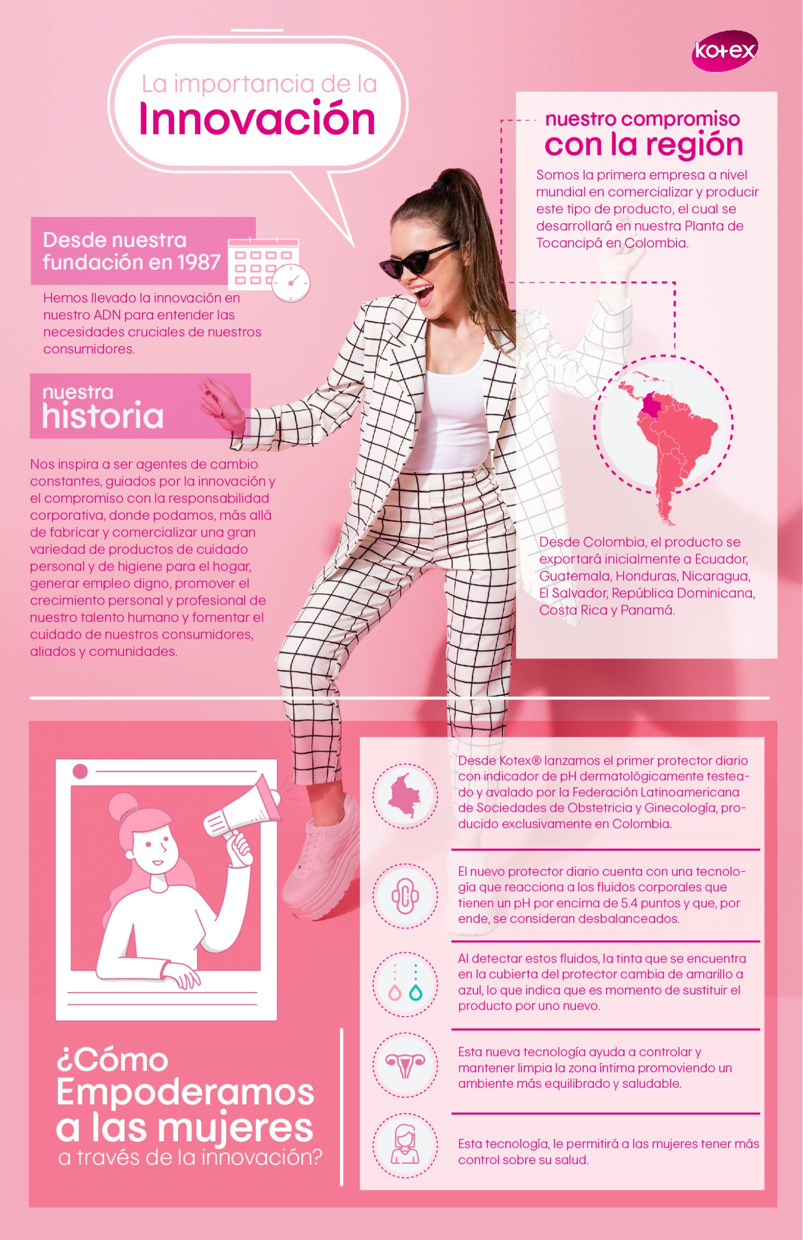 Con un legado de innovación, Kimberly-Clark vuelve a revolucionar el cuidado y la higiene personal. Kotex®, la marca pionera de cuidado femenino, lanza el primer protector diario con indicador de pH, dermatológicamente testeado y avalado por la Federación Latinoamericana de Sociedades de Obstetricia y Ginecología (FLASOG); de esta manera, la empresa brinda a las mujeres de la región, soluciones de última tecnología que les permiten tener más control sobre su salud.
