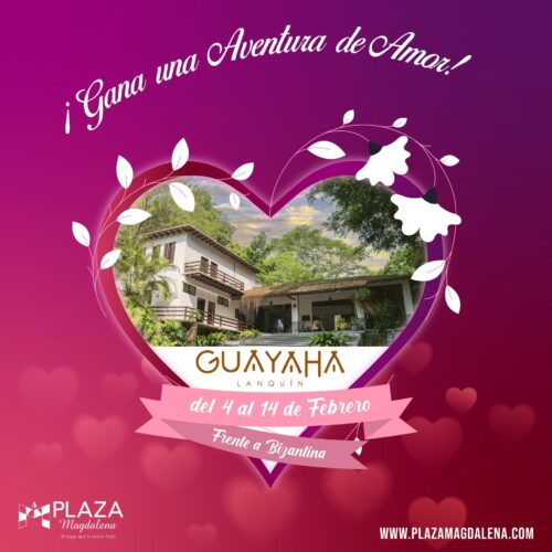 Para quienes presenten una factura de consumo desde Q150.00 en cualquier establecimiento, podrán participar en el muro del amor ubicado frente a Bizantina del 4 al 14 de febrero, y ganar decenas de premios incluyendo una de las 3 noches románticas para parejas en Guayahá Lanquín.