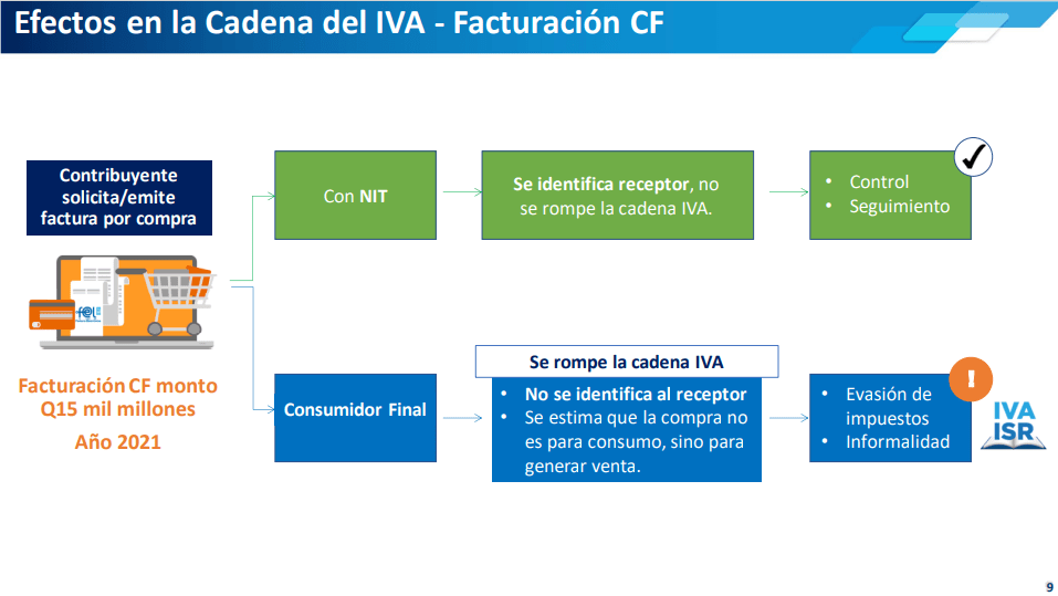 Sin embargo, mencionó que al momento de emitir o pedir una factura a Consumidor Final, esta romper la cadena del IVA y con ello el seguimiento de quien adquiere el producto final.