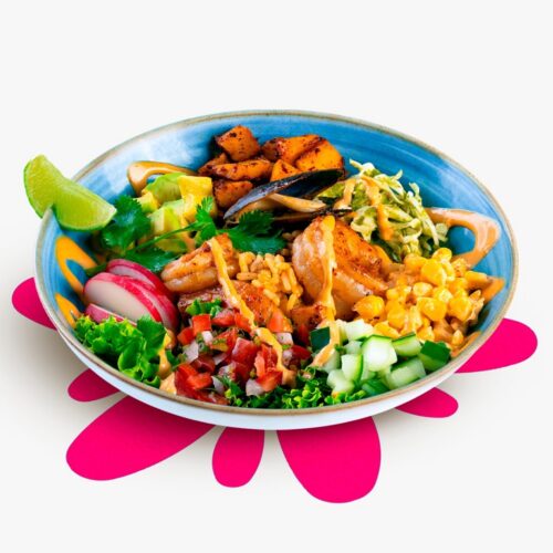 - TAZON TULUM: cama de nuestro arroz jardinero, decorado con nuestra combinación de mariscos y camarones salteados en polvo de chiles y tequila. Lechuga, esquites, rábano, pepino, pico de gallo, aguacate, chile rancho y mango tatemado. Decorado con nuestra salsa mango-habanero (semi-picante)