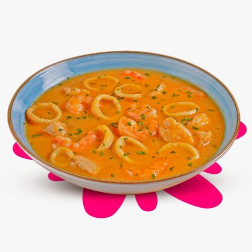 - CHILPACHOLE – Crema de Mariscos (sin lácteos): Nuestra clásica sopa de mariscos a base de camarones, calamares y filete de pescado, con un toque de maíz y cilantro. Acompañado de nachos Los Cebollines.